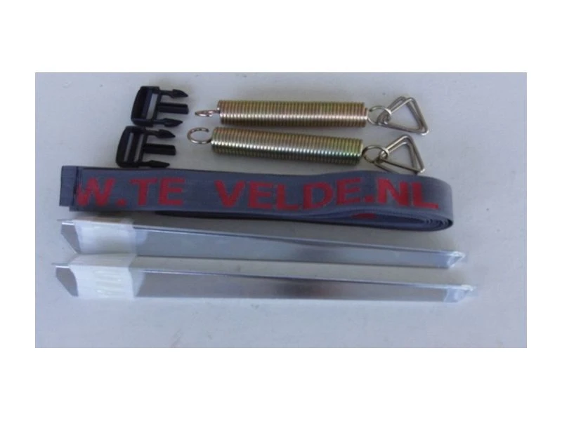 Alle Te Velde voortenten worden geleverd met stalen frame, gordijnen en gordijnophanging, tochtstrook/wielflap en pennen en haringen.  Â