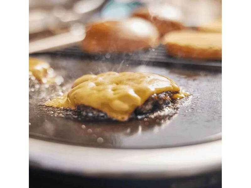 Geniet van nog meer heerlijke mogelijkheden met deze bakplaat voor je Lumin* Compact-elektrische barbecue. Hij transformeert heel gemakkelijk het oppervlak van je Lumin Compact-barbecue, zodat je in een handomdraai pannenkoeken en eitjes maakt voor ontbijt en fajitas en quesadilla’s voor het avondeten. Het met porselein geëmailleerde gietijzeren oppervlak hoeft niet ingebrand te worden, verdeelt de warmte gelijkmatig en voorkomt dat voedsel blijft plakken. En nadat iedereen heerlijk heeft gegeten, maak je hem eenvoudig schoon met water en zeep. *LUMIN is een handelsmerk van Weber-Stephen Products LLC en is het onderwerp van lopende registraties of aanvragen in de Verenigde Staten en andere landen.